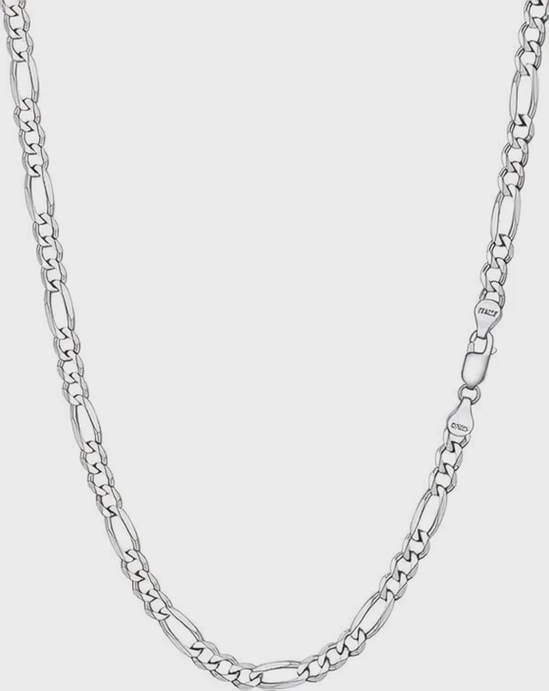 2mm Figaro Chain Necklace in Solid Sterling Silver -18"/ 20" / 22" / 24"
