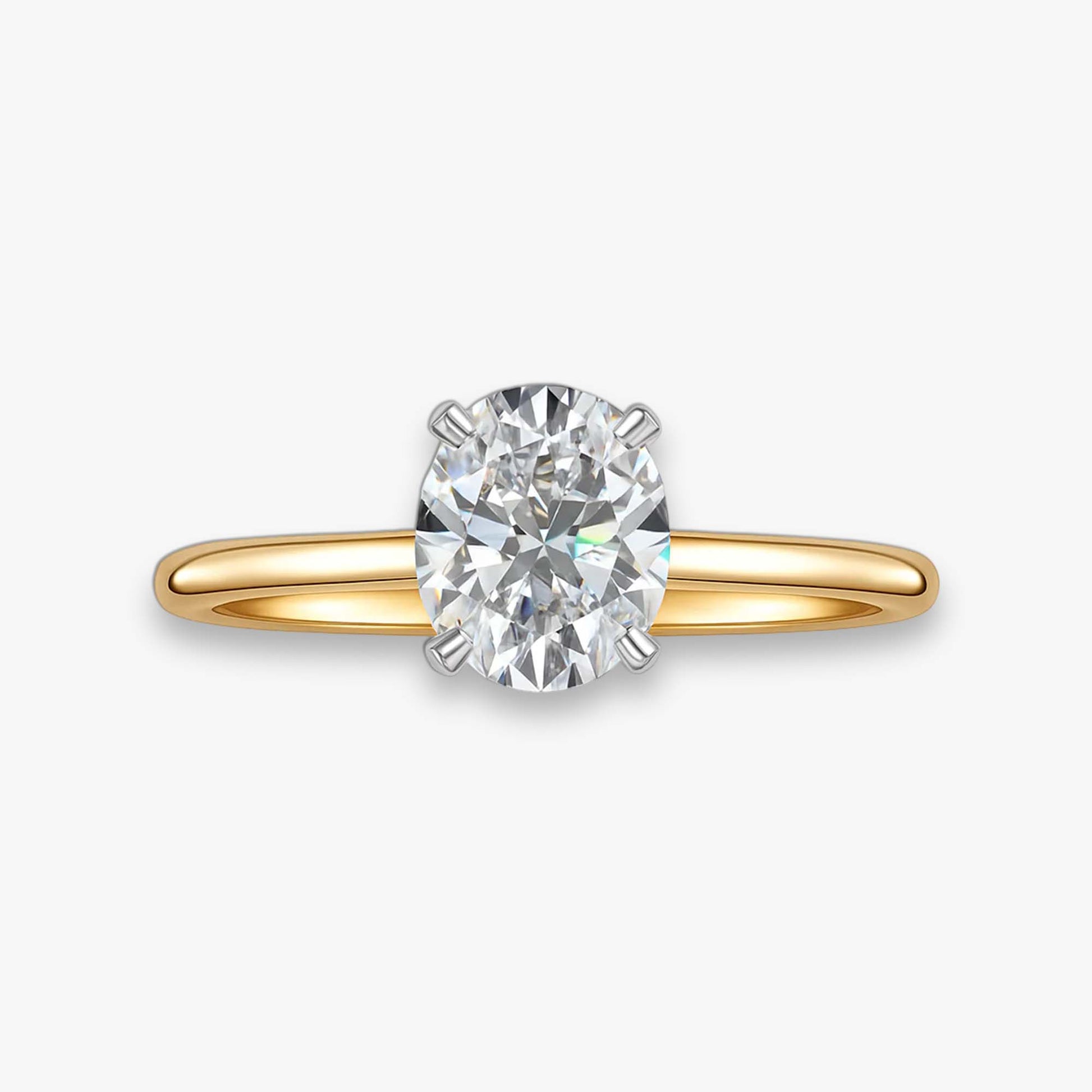 Exude timeless grace with this oval solitaire ring, securely cradled in a classic 4-tab prongs basket setting. Its simple yet elegant design showcases the brilliance of the center stone, making it a symbol of enduring love and sophistication.